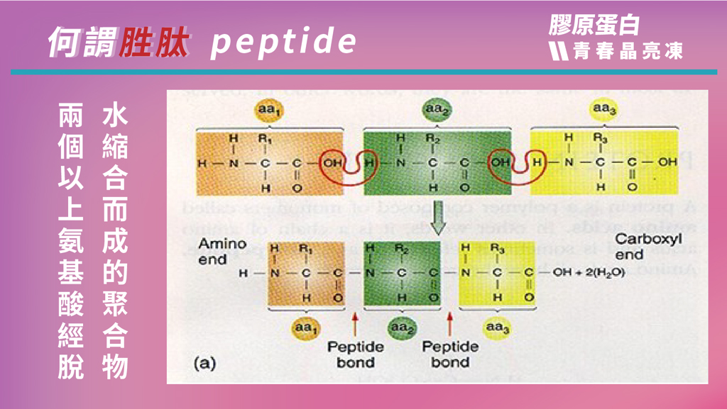 膠原蛋白分子量大約在15OO-2OOO道爾頓-不利人體吸收,膠原蛋白胜肽分子量大約600道爾頓-不須經消化即可直接吸收。