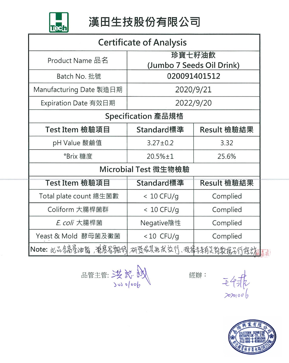 品名:珍寶七籽油飲 Jumbo 7 Seeds Oil Drink
