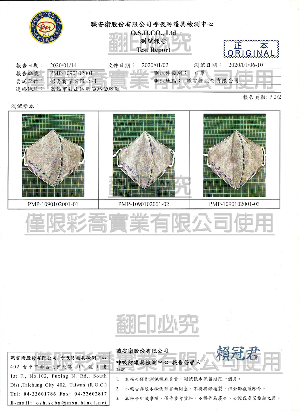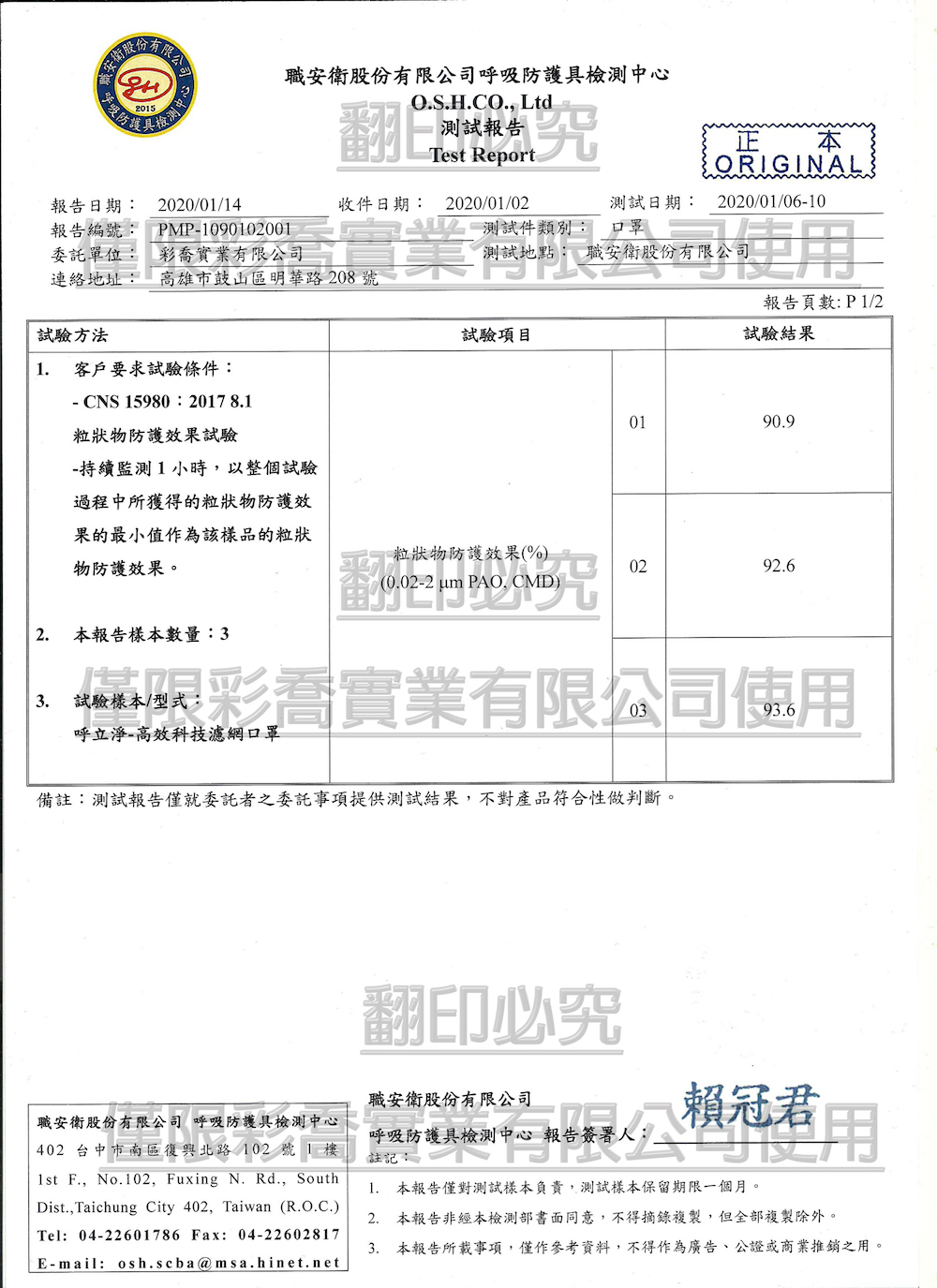 -台灣通過CNS15980 A級防護檢測,為高效防霾口罩